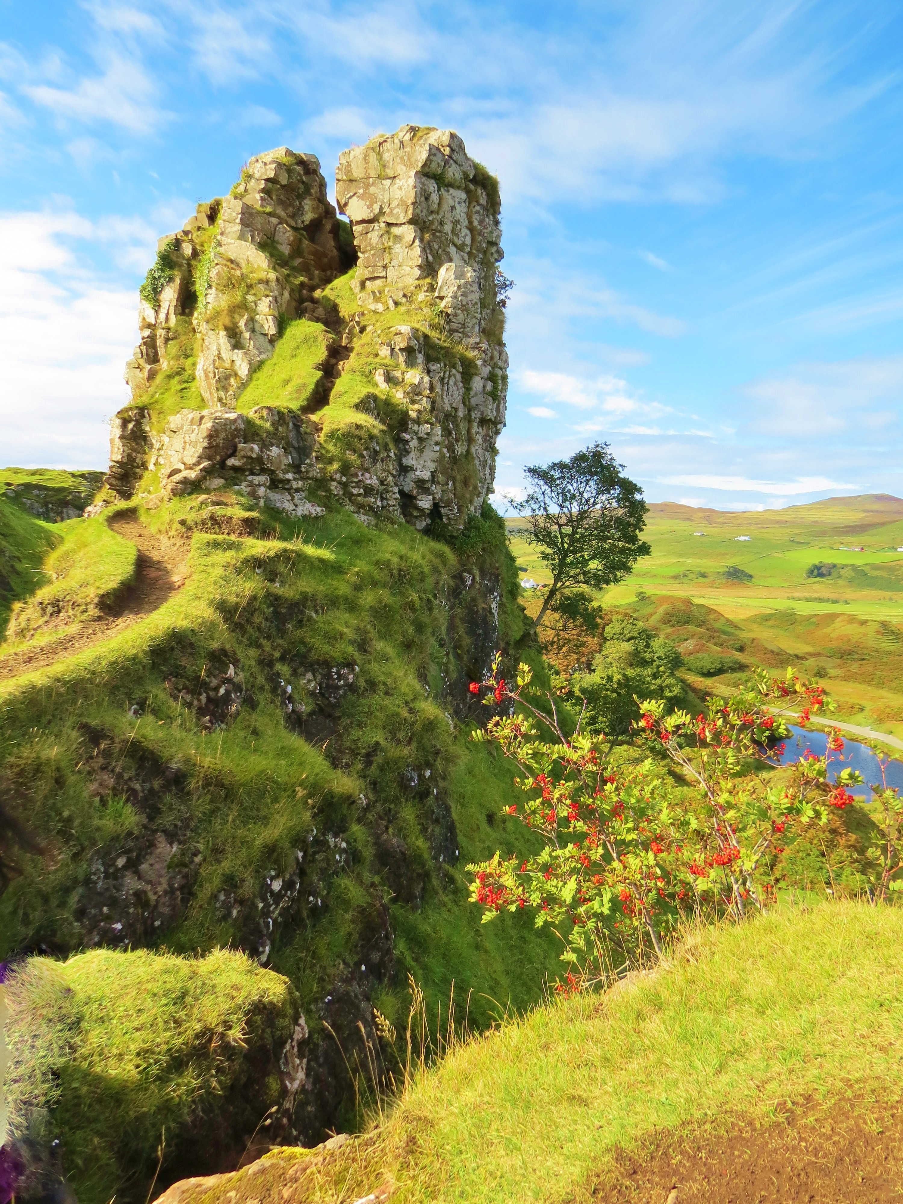 Watching over the fairy circles is, what geologists would call, ‘a basalt intrusion’, but is commonly known as ‘The Castle of the Fairy King’ or Euan’s Castle’.