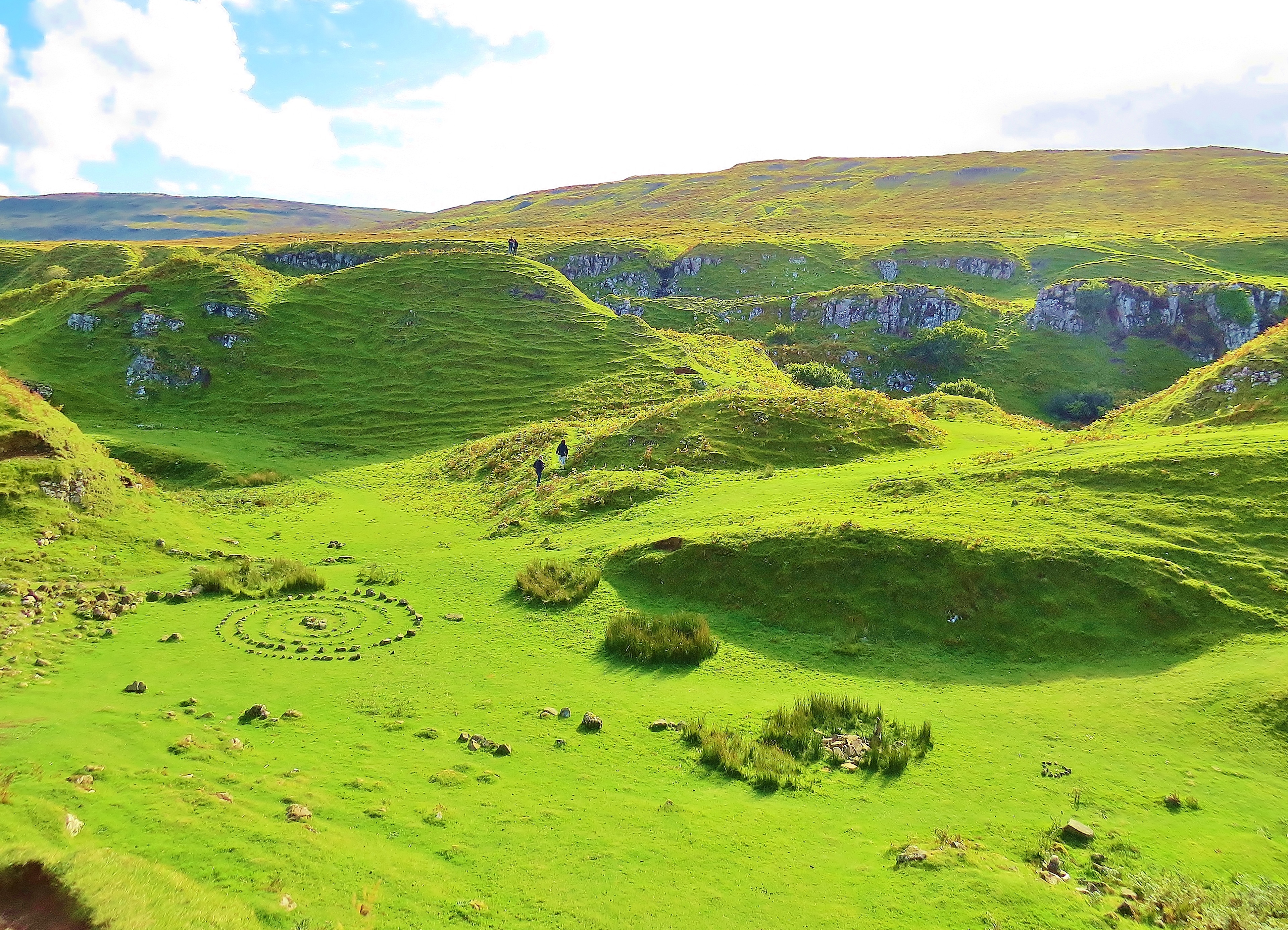 On the west side of the Trotternish Peninsula, near Uig, we once again find an area frequented by fairies, this time, the Fairy Glen. This is a place which, like the Fairy Pools, is steeped in fairy lore. It, too, has a magical feel to it. Ask about the circles of stones and the only answer one is likely to get is that this is the work of the fairies.