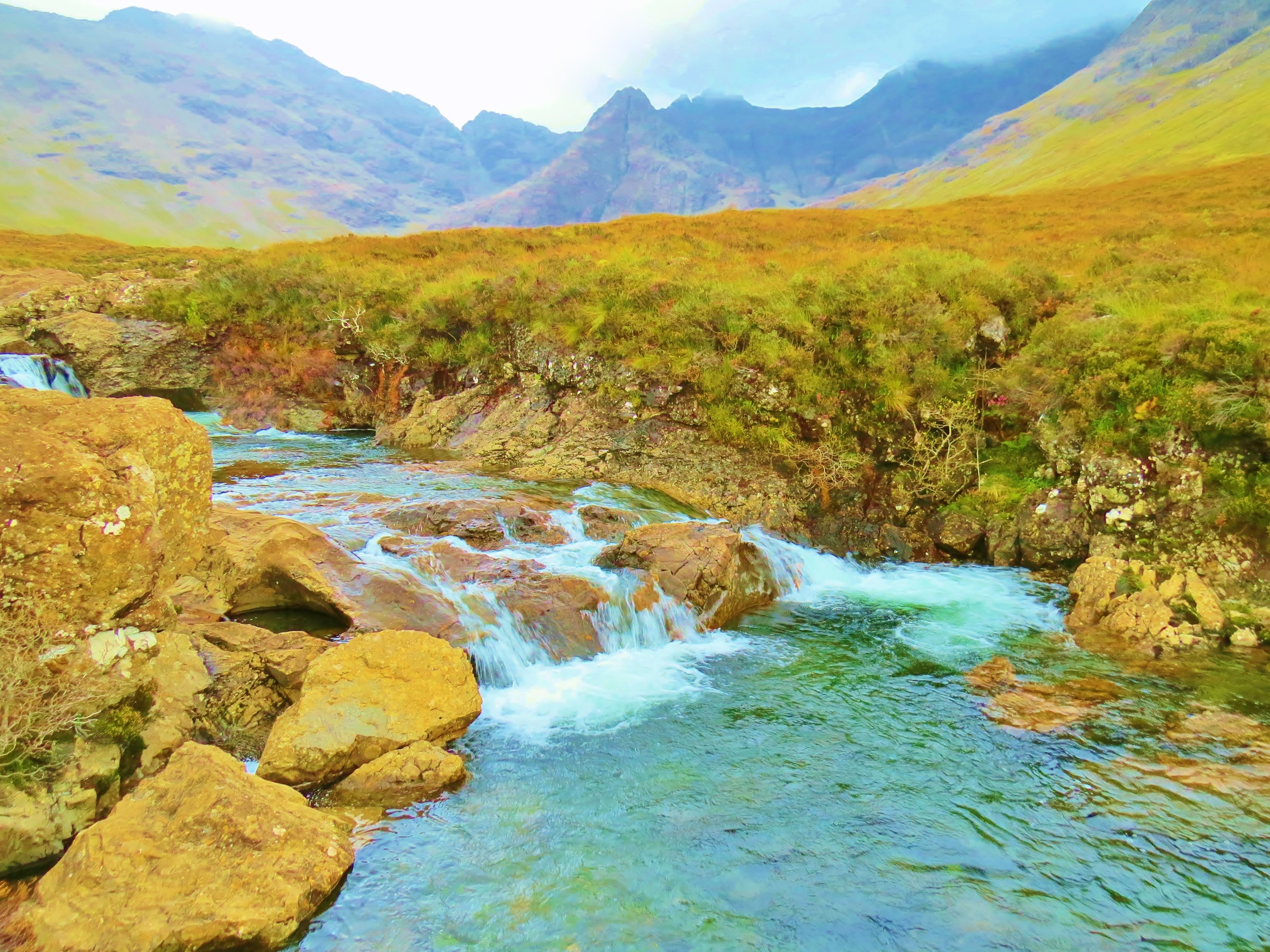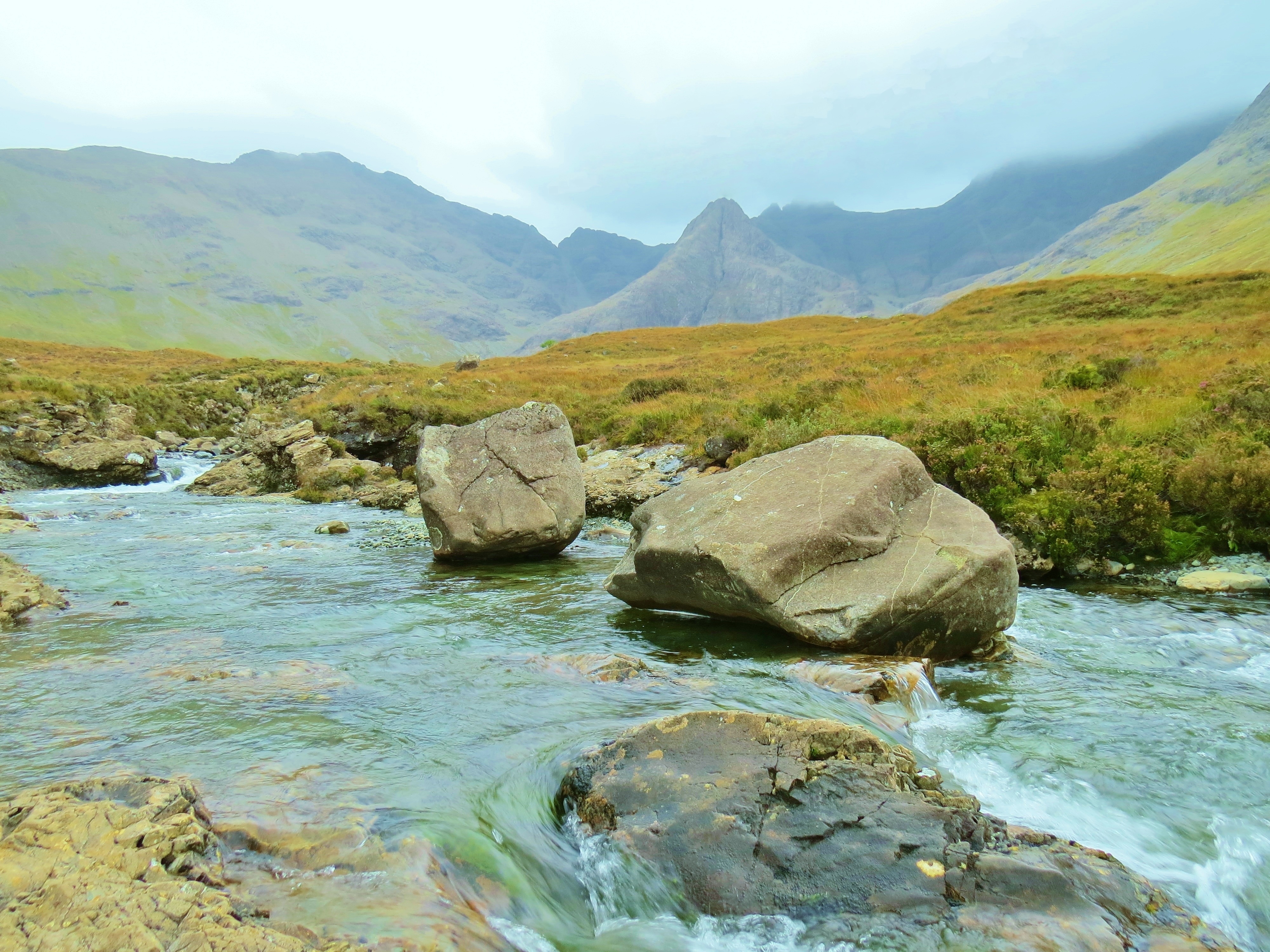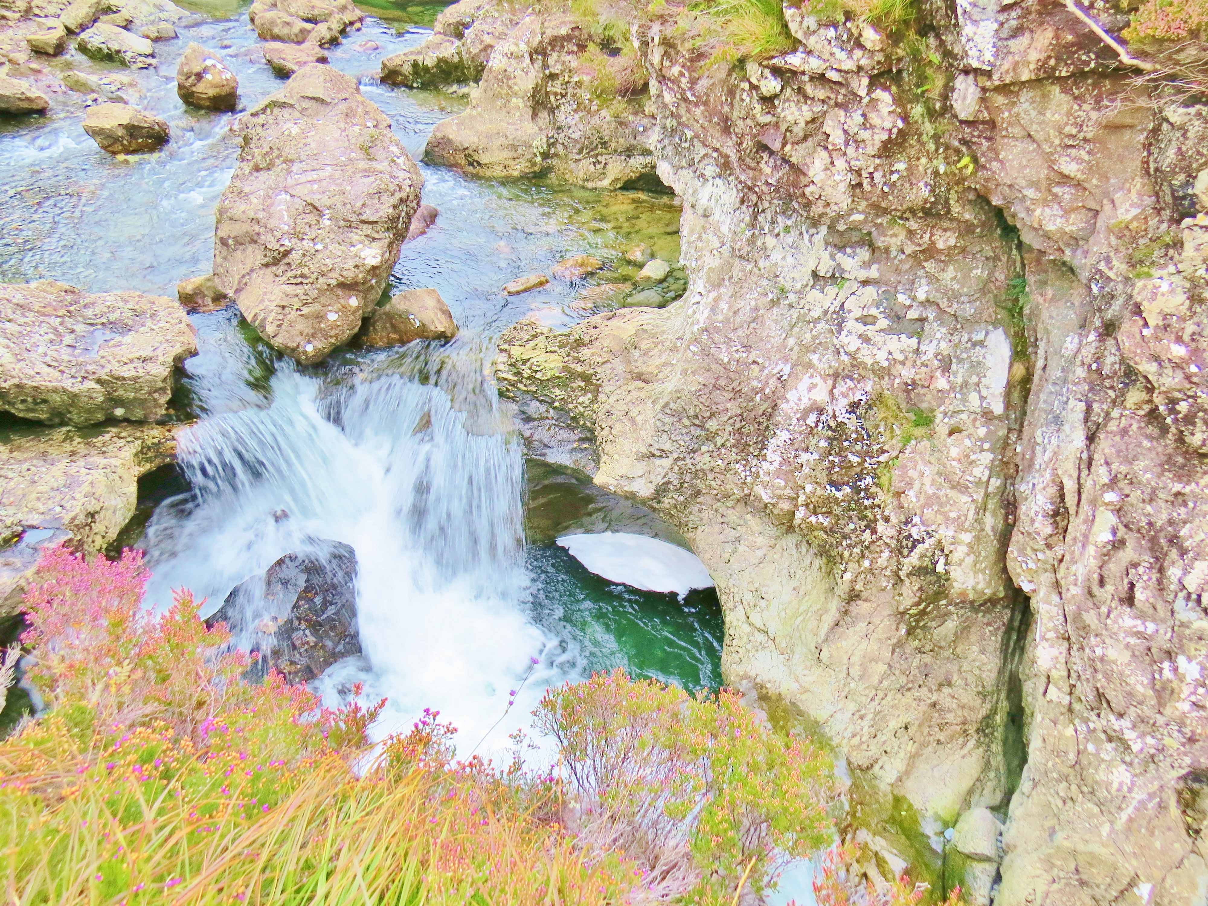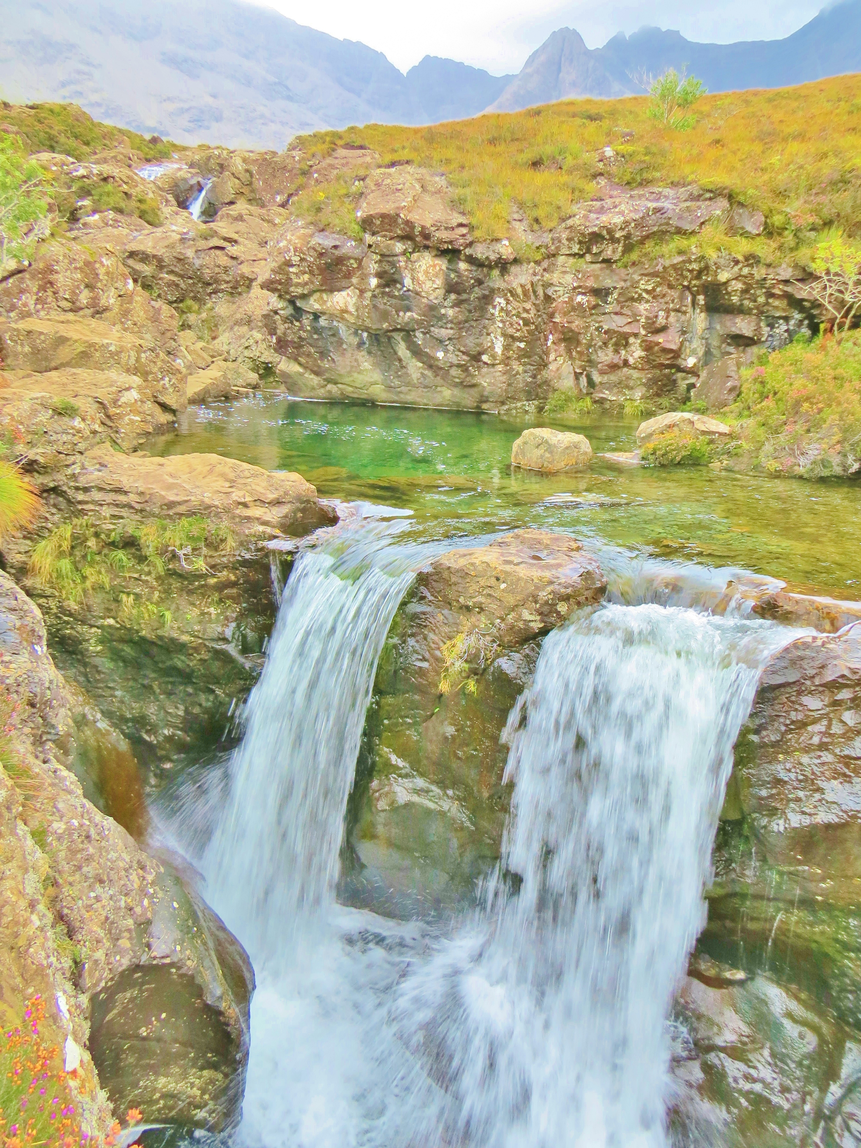 The area is called Fairy Pools because, in island lore, this magical place is home to fairies, those tiny, mystical entities, who, Celtic people believed, frequent the world of mortals and must be respected lest they use their magical powers to wreak havoc. It is difficult to be in the Western Highlands of Scotland and not find oneself being made into a believer. There is an other-worldly, mystical air in so many places. On Skye, the Fairy Pools is one such.