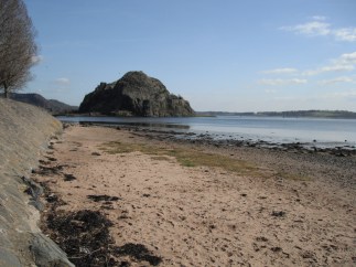 From sea level, looking up at the Rock, it does not look as if there is room for any flat grassland, but this photo shows how deceptive that perspective is. From not far away, Dumbarton Rock looks barren and forbidding. For centuries, though, it was a hive of activity and this picture shows just how attractive it really is. The long and detailed history has been beautifully documented and illustrated by someone other than me. I’ve posted the link below which will take the reader to this source. I’d give the highlights but feel that the privilege should go to the author and researcher of all that wonderful information. Click on the link below to access the site.