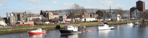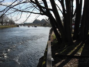 The Leven Nearing Its End. It shares the landscape with Dumbarton Rock as it flows around that ancient pile before joining the Firth. I previously posted the beginning of the River Leven. Now we’ll see its incredibly beautiful end and learn the fascinating history of Dumbarton Rock and Castle whose origins go back thousands of years. First, though, some images of the river as it passes through the center of Dumbarton.